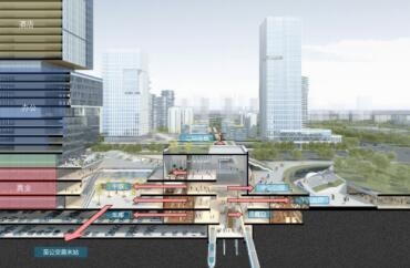 作為成都首批次場站綜合開發的14個TOD示范項目之一,成都行政學院站TOD總投資超150億,項目位于成都東進橋頭堡,以站點為核心,周邊半徑3公里范圍內共規劃有6條軌道線。成都行政學院TOD是成都東西向干線2號線(已運營)和成都第二條環線9號線(規劃)的換乘站點。根據《成都市軌道交通場站一體化城市設計導則》,行政學院站為組團級站點。項目由大型商業綜合體、五星級酒店、超甲辦公、創意街區、住宅、學校等業態構成,以“東進門戶、創驛綠谷”為主題打造為以公共交通結合慢行體系為主要出行方式的“活力中心”。結合功能板塊,形成“交通圈”“商業圈”“生活圈”相互支撐的城市格局。通過加強站點與產業功能區銜接,提升營商環境、吸引高端要素聚集,打造創新開敞空間;健康運動場景依托豐富的綠色資源,滿足多層次人群需要的體育運動場景,完善綠道體育消費新場景;生活娛樂場景提供多種業態布局,同時強調多元、互動、公共性,提升街區的活力。