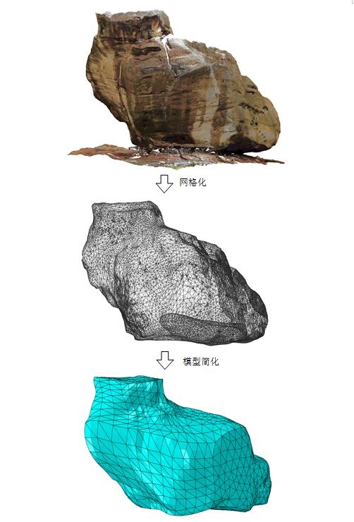 在對紗帽石穩(wěn)定性進(jìn)行評估過程中,市建科院技術(shù)團(tuán)隊(duì)與重慶交通大學(xué)相關(guān)專家經(jīng)過多次溝通,確定了定性分析+數(shù)值模擬的評估方案。評估中定性分析了紗帽石的當(dāng)前所處環(huán)境、形態(tài)特征、結(jié)構(gòu)特征、破壞模式等,作出紗帽石穩(wěn)定性定性分析初步評價(jià)。另外,評估采用三維激光掃描儀,對紗帽石進(jìn)行3D掃描,復(fù)原出紗帽石的三維模型,再將其導(dǎo)入有限元計(jì)算軟件中,建立含有紗帽石的邊坡模型,對其在多種荷載工況下的穩(wěn)定性進(jìn)行了有限元計(jì)算,最終提出了合理的評估和建議。