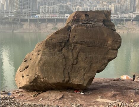 主城區(qū)“兩江四岸”治理提升嘉陵江岸線貫通工程嘉濱路大溪溝段項(xiàng)目位于嘉陵江南岸(渝中區(qū)),項(xiàng)目范圍主要為洪崖洞—黃花園大橋、黃花園大橋—曾家?guī)r大橋、曾家?guī)r大橋—渝澳大橋三段。紗帽石位于渝中區(qū)嘉濱路街靠嘉陵江江邊,為嘉陵江大橋下東側(cè)巨型巖石。該石因形似古代官帽烏紗而得名,被大眾稱之為“紗帽石”,石高13米,寬約11米,厚約9米,威風(fēng)凜凜,矗立江邊,石上鐫刻“董公死難處”五字,字徑0.6米。2002年,紗帽石董公死難處石刻被渝中區(qū)政府確定為區(qū)級文物保護(hù)單位。