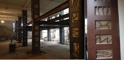 文創改造項目在具備結構安全的基礎上,需要兼顧藝術化設計的高要求,市建科院技術團隊以“尊重歷史、生長建筑”的理念,遵循“摒棄多余裝飾、崇尚功能主義”的工業風格,創造性進行了“展現結構藝術、新舊歷史對話”的結構改造藝術化設計,打造出空中船橋、花式包鋼藝術柱群、最美消防樓梯、結構一體化藝術陽臺、隱居結構增設的無邊際泳池等多個網紅結構景點,實現了結構與藝術的統一。