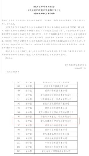 6月16日,從市經(jīng)濟(jì)信息委傳來喜訊,重慶設(shè)計(jì)集團(tuán)所屬子企業(yè)重慶市建筑科學(xué)研究院有限公司獲2024年重慶市專精特新中小企業(yè)稱號。