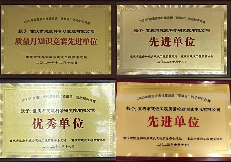 2021年重慶住建系統第一屆質量月知識競賽開展以來,市建科院公司積極參與,2021年、2022年榮獲先進單位稱號,2023年、2024年榮獲優秀單位稱號,子公司榮獲先進單位稱號。連續4年取得質量月知識競賽佳績的背后,是集團公司扎實的技術儲備對質量矢志不渝的追求。