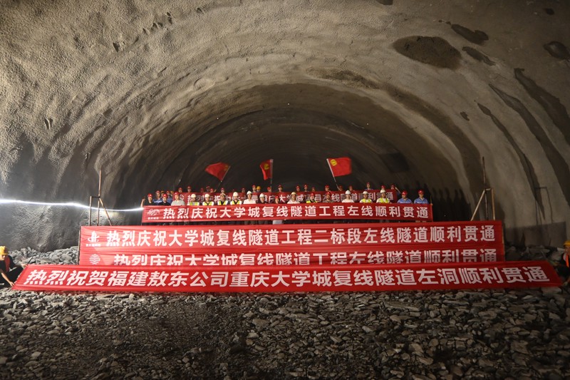 重慶大學城復線隧道工程二標段左線隧道貫通現(xiàn)場